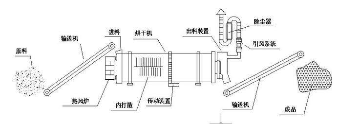 4、筒体的有效容积大,单位时间处理的物料的量高,因内部配有扬料板,作业中可对物料进行均匀干燥,设备的产量大、效率高。